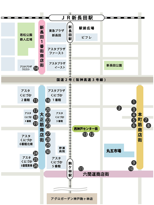 ・新長田本町筋商店街 各店舗 https://www.honmachisuji.com/